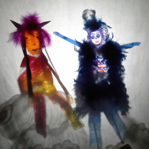 Ich nenne es aber Lichtfigurentheater, weil ich mit farbigen, transparenten Figuren arbeite, die keine dunklen sondern leuchtende und farbige Schatten werfen. Es sind also Lichtfiguren.